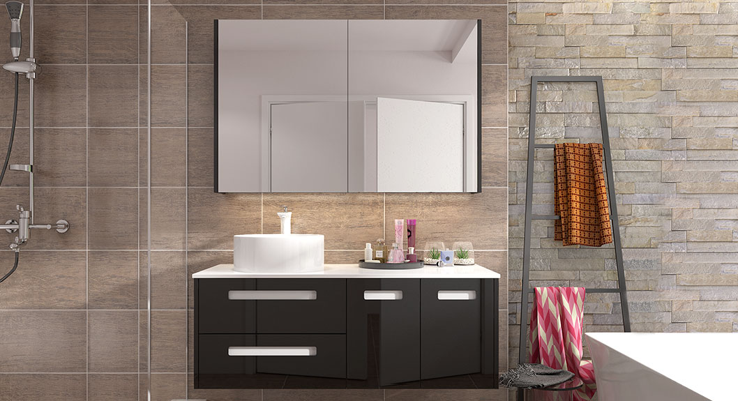 Black Lacquer Mirrored Bathroom Cabinet BC17-L03