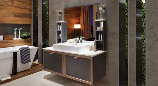 Silver-Flashing and Matte Lacquer Bathroom Cabinet OP17-103.